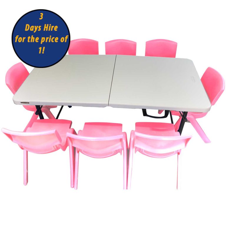 All Children’s table and chairs are available for THREE (3) days hire for the price of ONE (1)