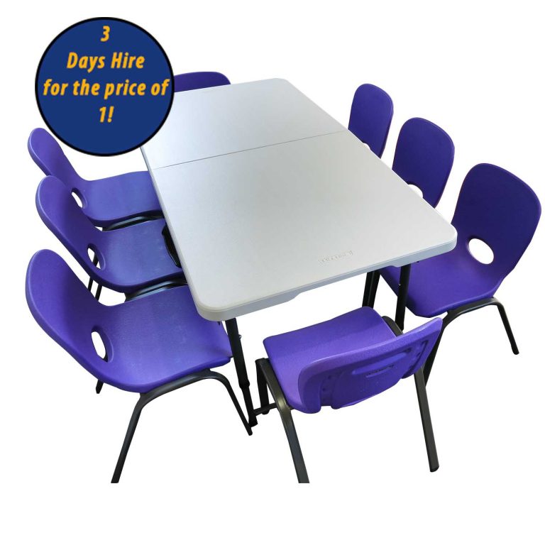 All Children’s table and chairs are available for THREE (3) days hire for the price of ONE (1)